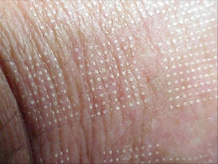 *Results vary by Individual. Photograph of fractional skin resurfacing pattern effect. White dots are treated area. undamaged skin between treatment areas speeds healing. density of treated skin can be adjusted based upon patient goals, health and desired recovery time