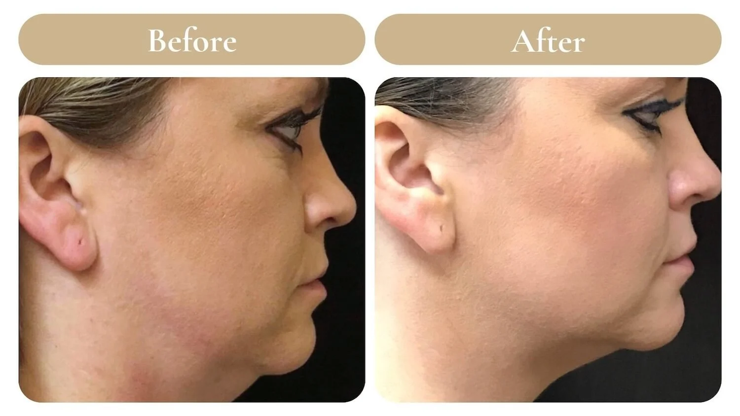 Before and after results from a Spa 35 client in Boise. Kybella helped improve the appearance of fat under chin.
