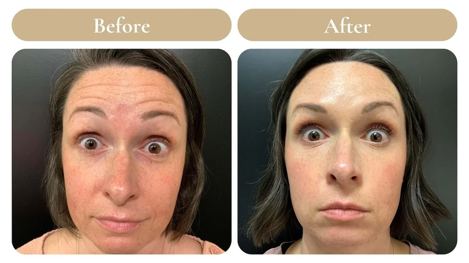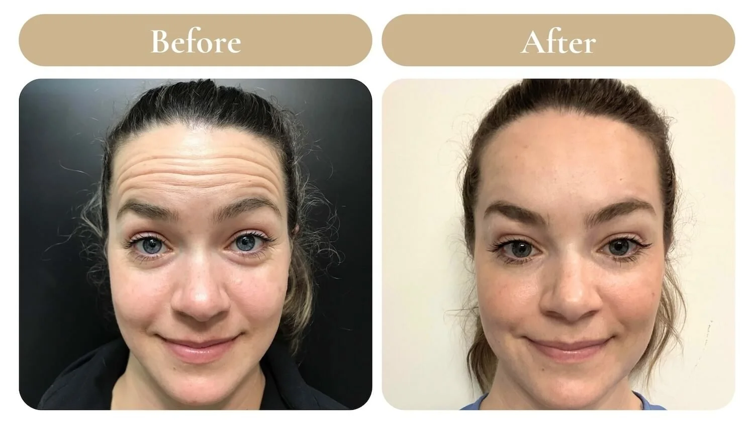 Before and after results at Spa 35. Botox to improve the appearance of forehead lines.