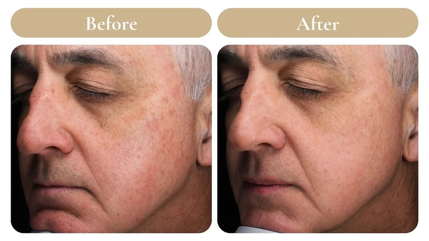 Before and after results at Spa 35. Chemical Peel to improve the appearance of age spots.