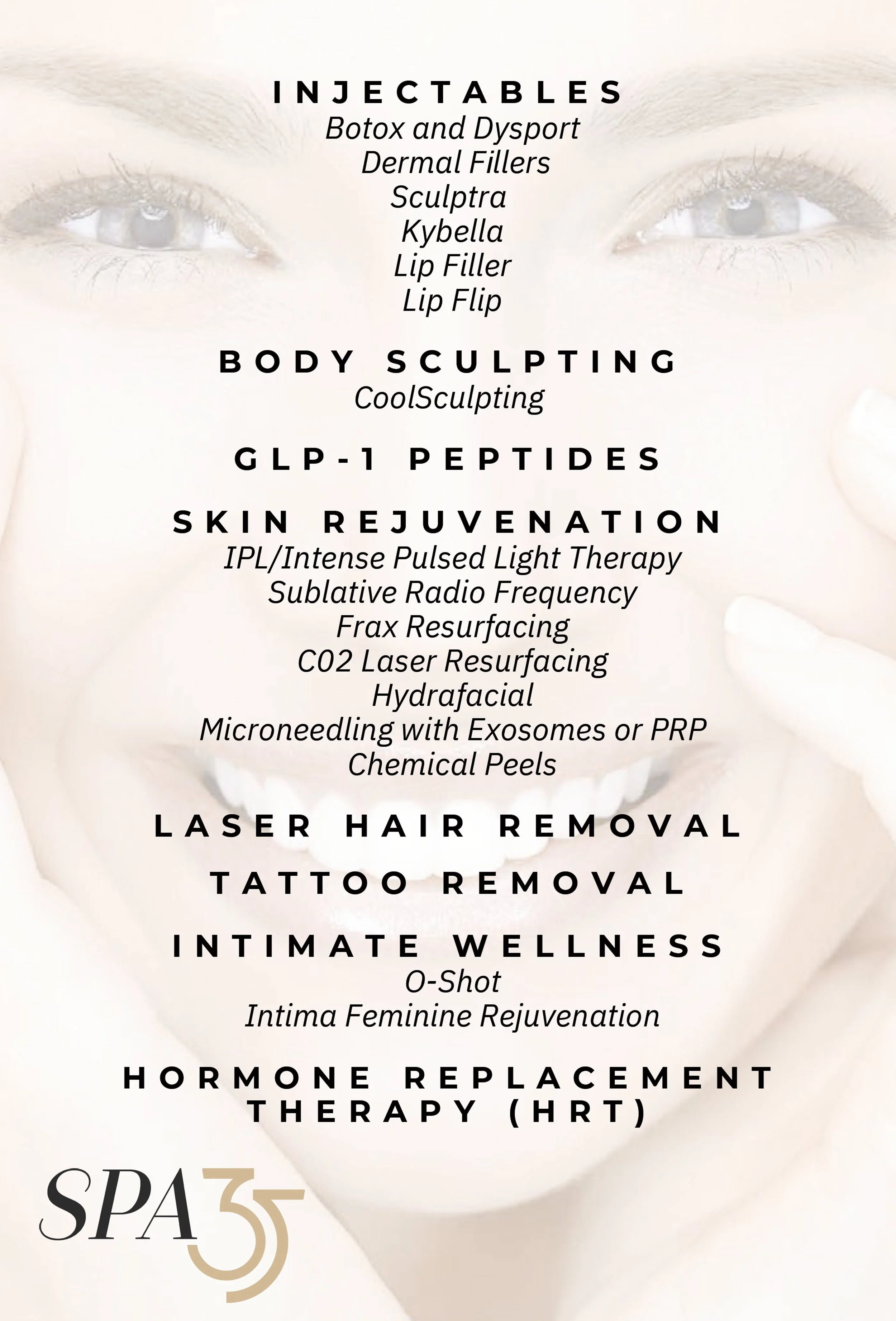 Spa 35 Medical Spa has created a comprehensive suite of advanced cosmetic services to help you look and feel your best.